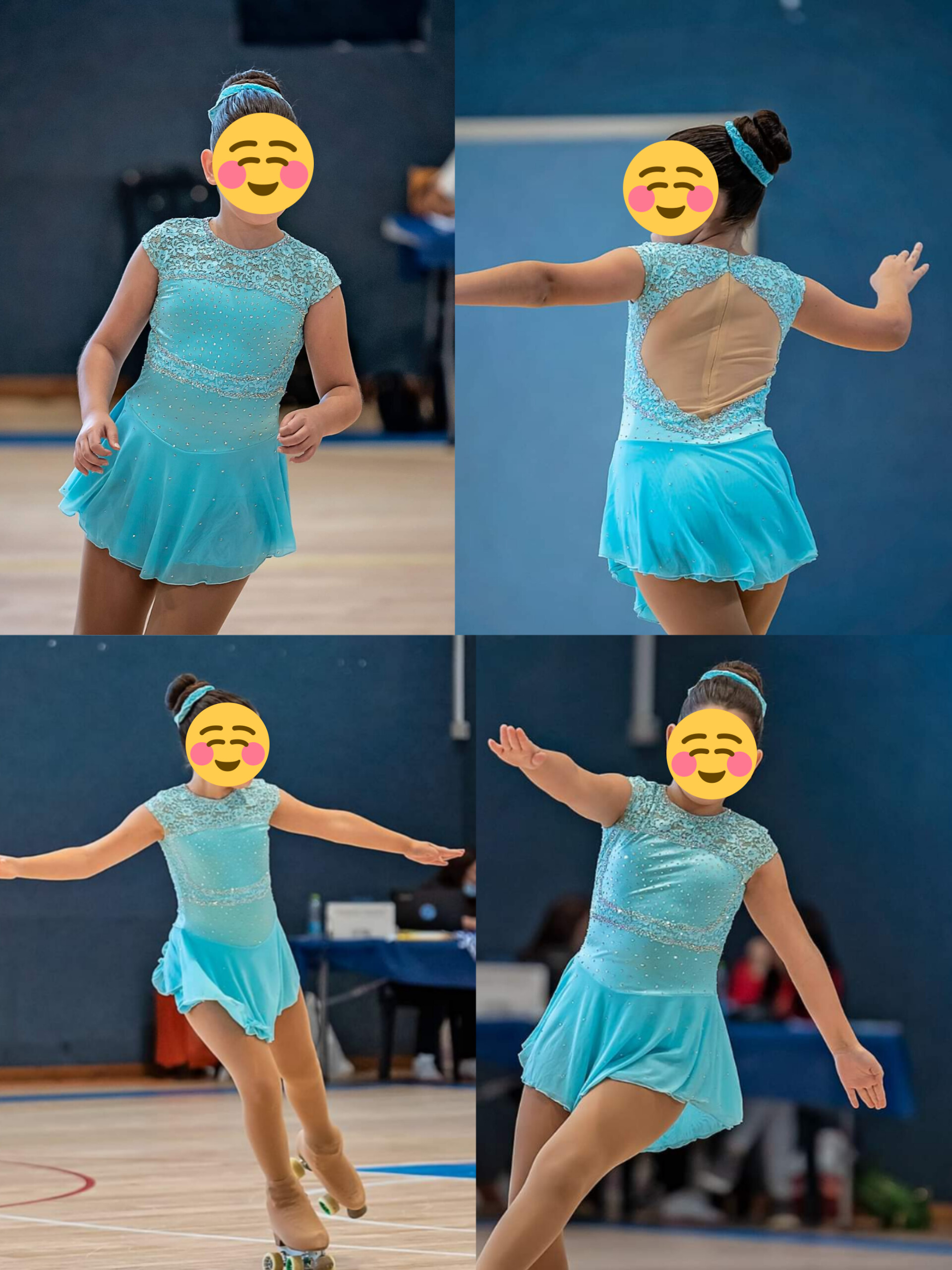 שמלת סולו בצבע טורקיז בהיר, מתאים בערך לגיל 8-9, מבנה גוף בינוני