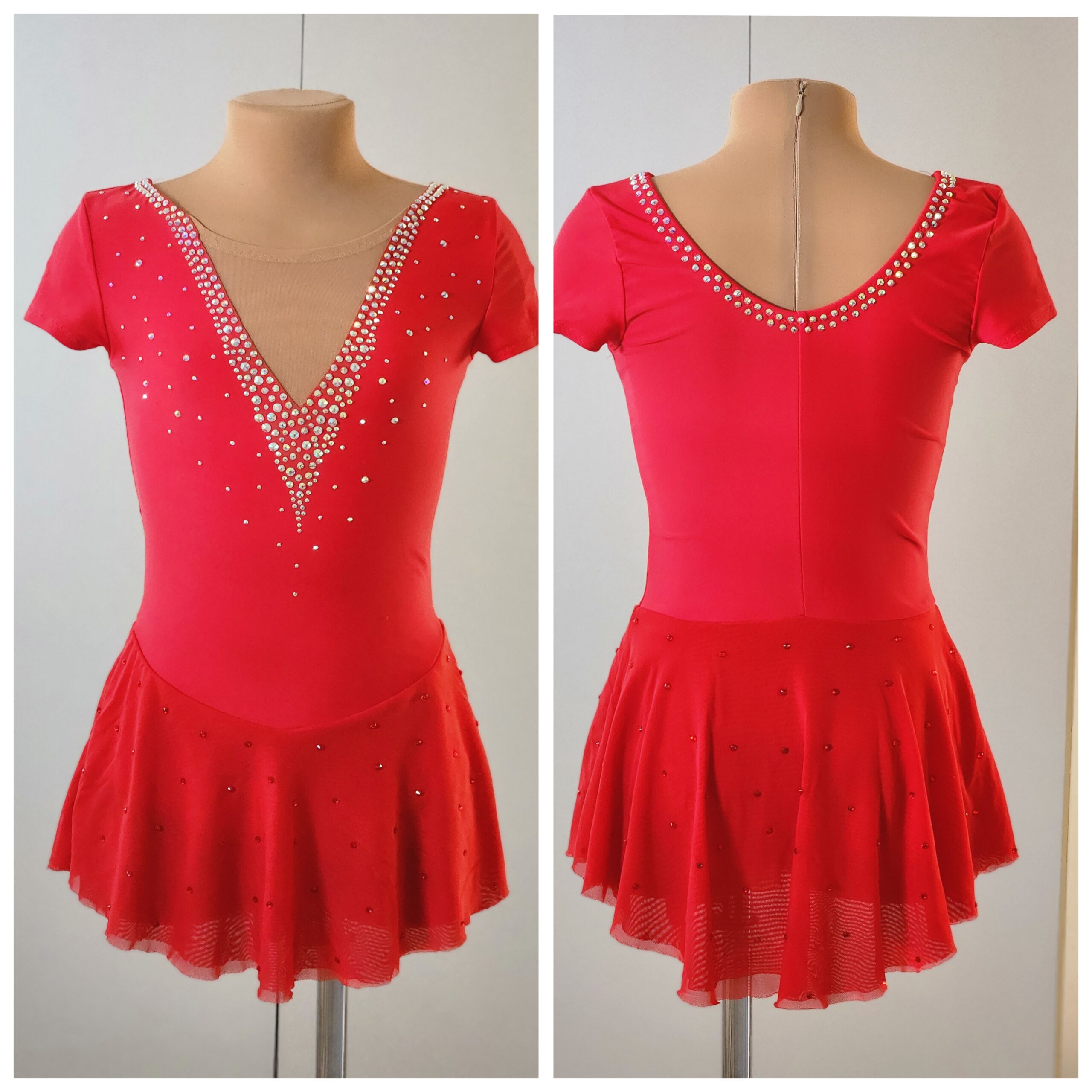 שמלת סולו בצבע אדום חי, מתאים בערך לגיל 9-10, מבנה גוף בינוני